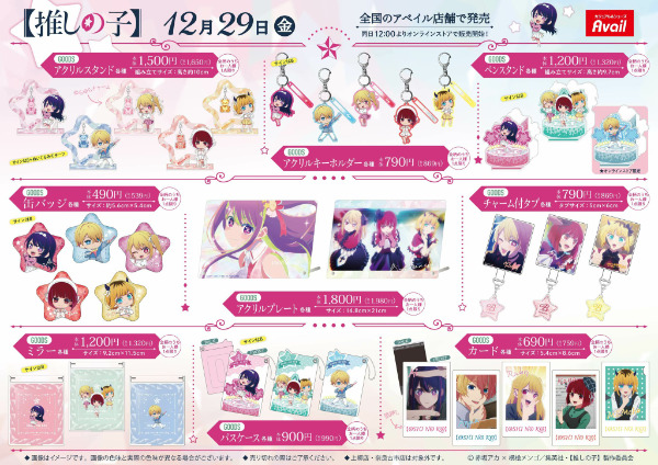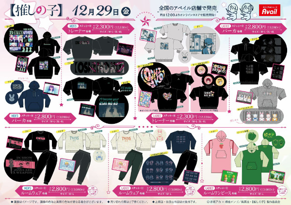 推しの子×アベイル!グッズ&洋服2023年オンライン&店舗取扱い♥バッグチャームやパーカーなど大量!!!!