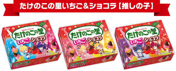 | きのこの山いちご&ショコラ【推しの子】 | ・星野ルビィ&星野アイ ・星野アクア&有馬かな ・黒川あかね&MEMちょ |