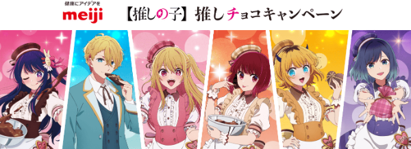 推しの子×明治チョコレートコラボキャンペーンの開催が決定しました!2024年3月12日よりアーモンドチョコレート・マカダミアチョコレート・きのこの山・きのこの里が推しの子コラボパッケージで登場します♪チョコレート作りに奮闘するアイたちが尊い♡