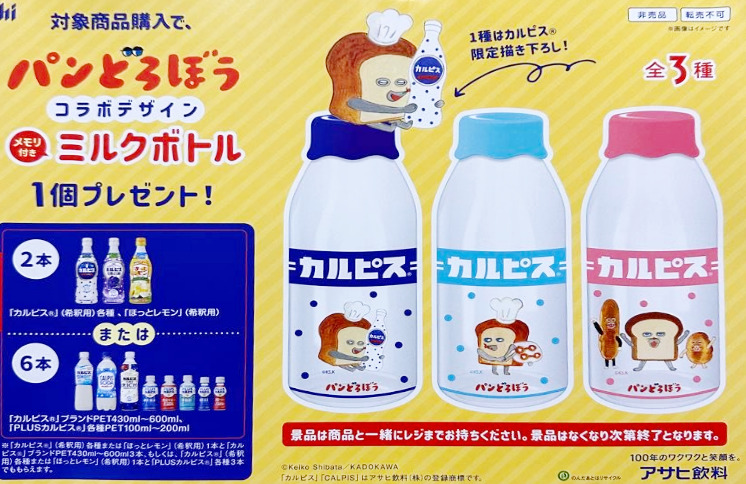 ・人気の絵本パンどろぼうとカルピス「ミルクボトル」キャンペーン♪
