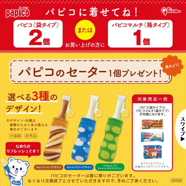パピコのセーター2025年どこでもらえる?2個買うとスーパーでおまけ貰えるキャンペーン開催
