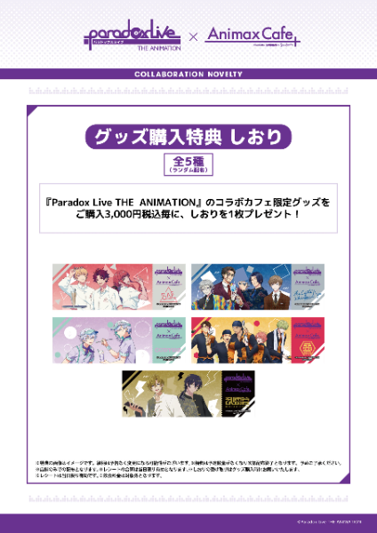 パラライコラボカフェinアニマックスカフェ!グッズ購入特典しおり全5種類