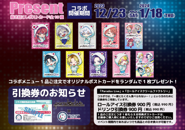 パラライ×ロールアイスfactory!コラボグッズ展開!特典ポストカード登場♪2024年1月18日まで