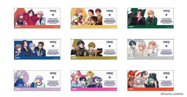 ZOZOTOWNにて、「パラライ×コンバーストーキョーコラボ」発売!Paradox Live と CONVERSE TOKYOコラボのTシャツとアクリルスタンド、巾着ショルダーバッグをラインナップ♪巾着は9チームのイメージカラーの9種、Tシャツとアクスタはそれぞれ3種を展開。購入特典として1点購入ごとにチケット風ステッカーをプレゼント♪