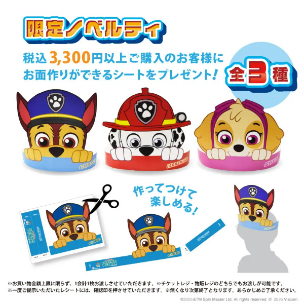 さらに💡ここでしか手に入らないパウ・パトロールの限定グッズ🛒も販売! 購入特典のノベルティプレゼント🎁もあるから、ぜひチェックしてね💖
