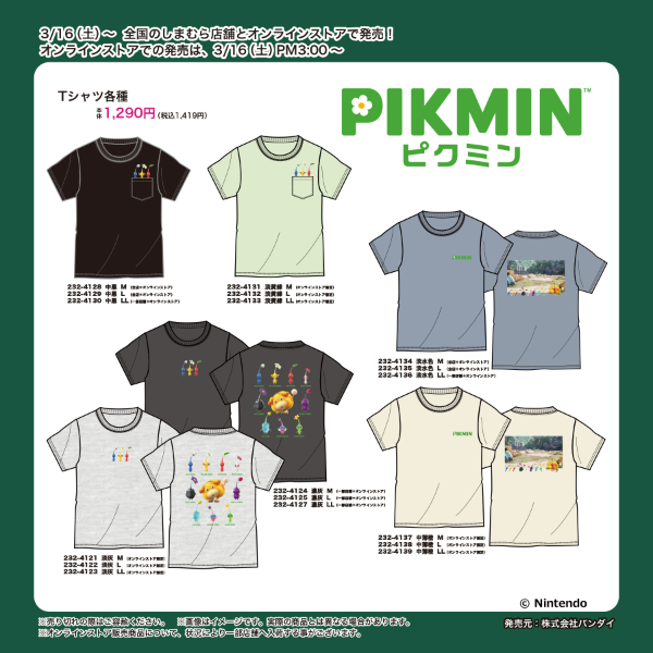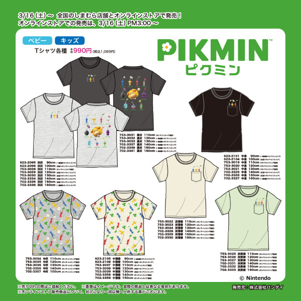 「ピクミンTシャツ」しまむらコラボ発売!キッズ&ベビー&大人用を店舗・オンラインストアで取扱い