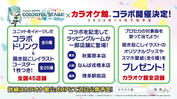 全国展開のカラオケボックス「カラオケ館」と「プロセカ」のコラボイベントが、2023年10月下旬より開催決定!