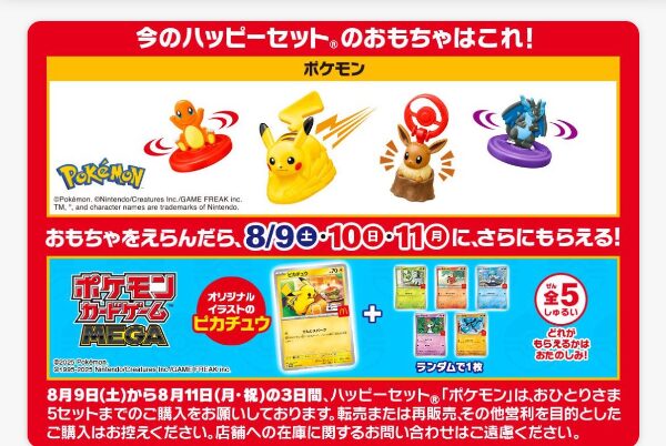 ※ハッピーセットのおもちゃにポケモンが登場するのは、8月8日から。ポケカも配布されるのは8月9日から。