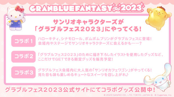 ・グラブルフェス2023の会場内でシナモロールやポムポムプリンと会えるかも!?