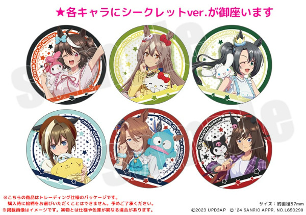 | TVアニメ『ウマ娘 プリティーダービー Season 3』×サンリオキャラクターズ 缶バッジ(6種+各キャラシークレット6種/全12種) (税込)440円 |