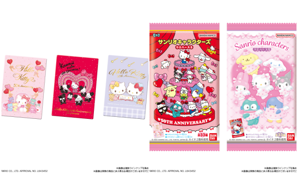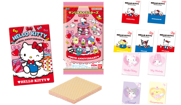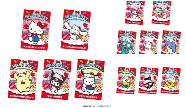 サンリオキャラクターズのウエハース第5弾予約受付中!キティちゃんの誕生50周年を記念したアートも使用されたカード付き♡カードの種類は全部で33種類♪パッケージから可愛さが溢れています♪