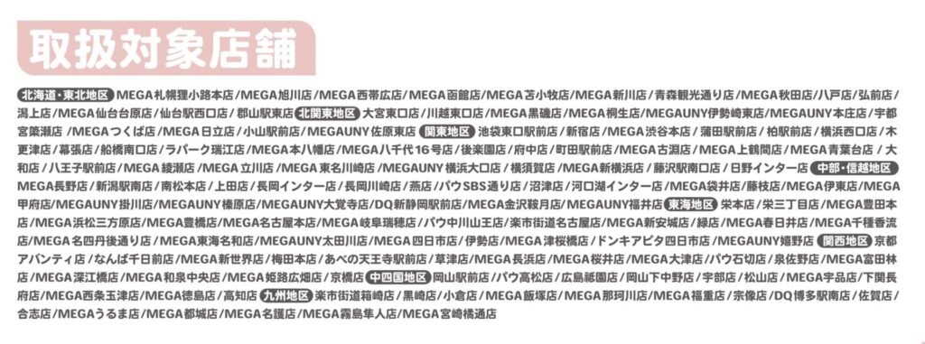 | 取扱店舗 | 全国のドン・キホーテ対象店舗(※ポスターにて案内) |