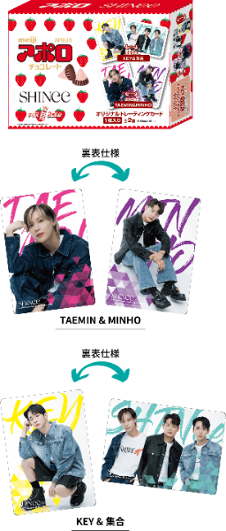 アポロパッケージにSHINEEがデザインされてて箱からかわいいですね。トレカも表裏仕様どちらもビジュアル良きですね。