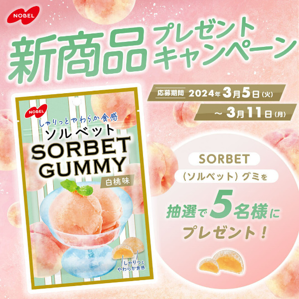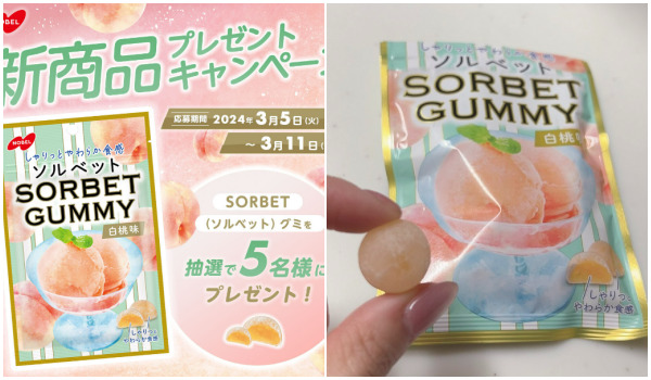・プレゼントキャンペーンでソルベットグミが5人の方に当たります!