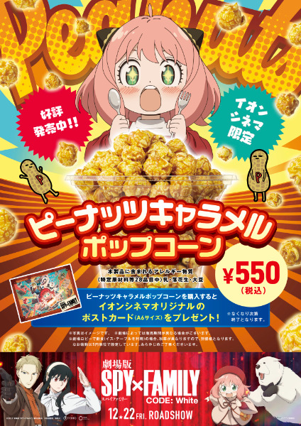 スパイファミリー×イオンシネマ!ピーナッツキャラメルポップコーン♪限定ポストカード付き