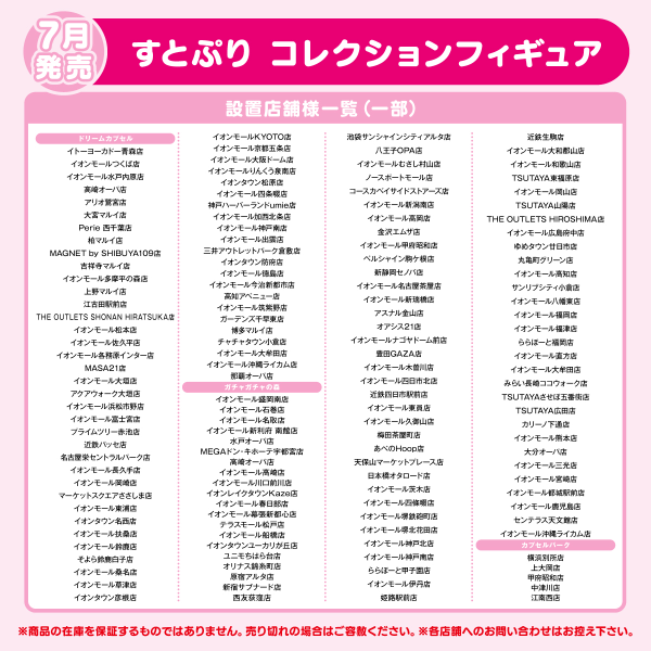 Q.販売店舗・設置場所はどこ? A.ガチャガチャの森、ガシャポンのデパート等店舗リスト一覧が公開されています。