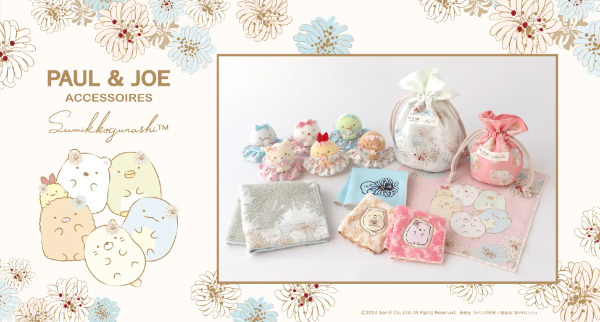 すみっコぐらし×ポールアンドジョーpaul&joe!コラボ取扱販売店舗公開!ハンカチや巾着ポーチ、てのりぬいぐるみ登場