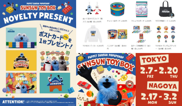 パペットスンスンのポップアップストア2025年♪東京・名古屋開催!グッズ販売、特典ポストカードも