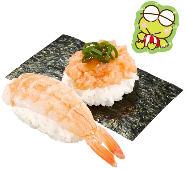 「えび・サーモンたたき包み はぴだんぶいコラボ限定ピック付き」は、2025年7月23日(水)から販売スタート!全6種のコラボピックがランダムで付属し、合計55.8万枚の限定数が無くなり次第終了となります。どのキャラが出るかはお楽しみ♪
