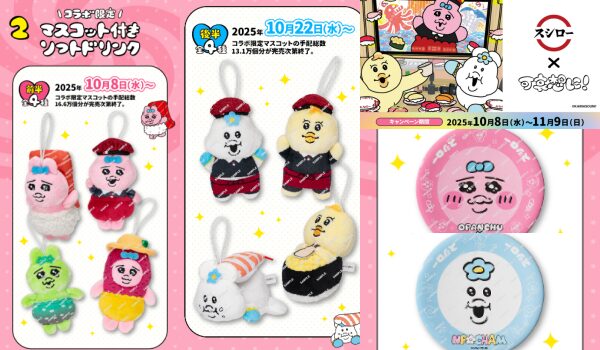 スシロー公式X上での匂わせ投稿から、2025年新たなコラボキャンペーンが開催される可能性が浮上!過去にも大人気だったおぱんちゅとのコラボに、今年はんぽちゃむ、きみまろも登場するのか!?新ビジュアルや限定メニュー、グッズに注目です😍