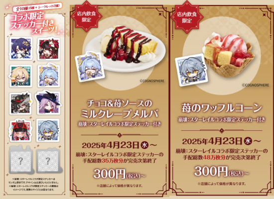 「チョコ&苺ソースのミルクレープメルバ」と「苺のワッフルコーン」には、限定ステッカーが付いてくる!