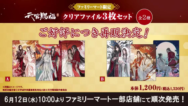 ファミマ×天官賜福(TGCF)クリアファイル3枚セット再販決定!謝憐と花城の美麗イラストに注目