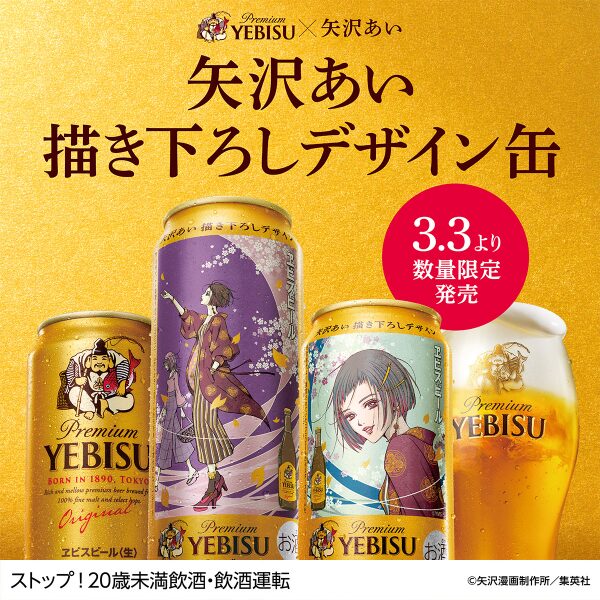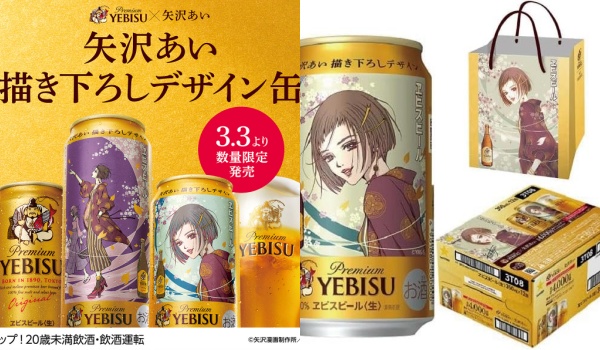 ヱビスビール矢沢あい描き下ろしデザイン缶が数量限定で登場