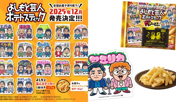 2025年12月8日、『よしもと芸人ポテトスティック』が全国の量販店菓子売場などで発売されます。本商品は、お笑い芸人たちの魅力を詰め込んだ限定アイテムで、全17組の芸人がダイカットステッカーになって登場。ラインナップにはマヂカルラブリー、マユリカ、ロングコートダディ、さや香など、人気急上昇中のコンビが勢ぞろいしています。ステッカーはそれぞれの漫才をイメージした描き下ろしイラストを使用し、ファンにはたまらない仕様となっています。スナック菓子は33g入りで、濃厚なWチーズ味のポテトスティックを楽しめます。お笑いとグルメがひとつになった、コレクション性と食べごたえを兼ね備えた特別な食玩です。