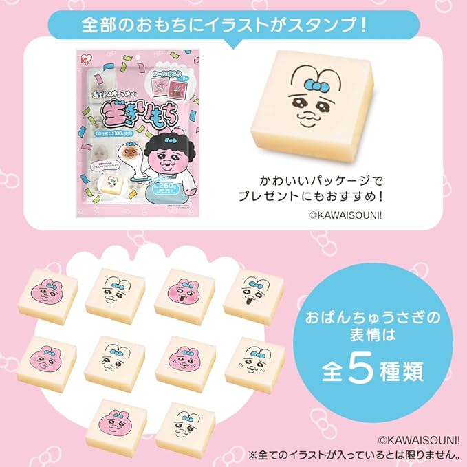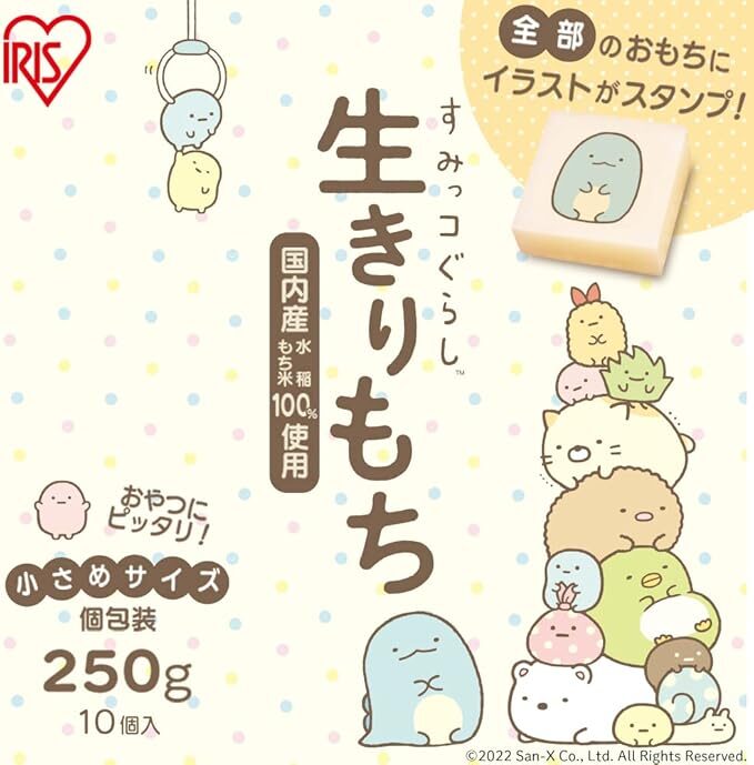 ・お餅の一つひとつにキャラのスタンプが入ってて癒やされる 🎍 ・サンリオやすみっコなど人気キャラとのコラボが目白押し 🍱 ・低温製法で精米された国内産もち米100%で味も本格的 🍙