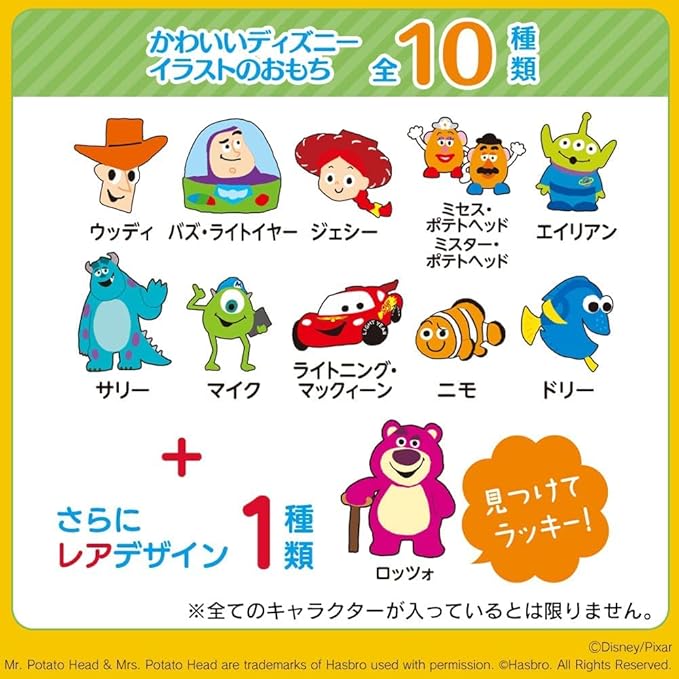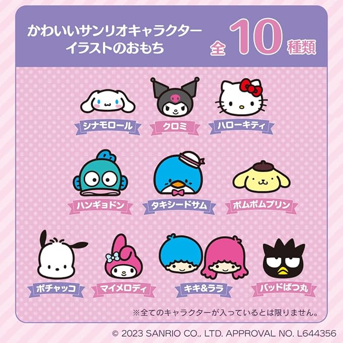 A.パッケージごとにサンリオ、ディズニー、おぱんちゅうさぎなどのシリーズに分かれているよ 🍱 自分の好きなキャラクターのパッケージを選んでお買い物できるのが楽しいね 🎵個包装のキャラクターは何がでるかはお楽しみ、ランダムだよ🎨