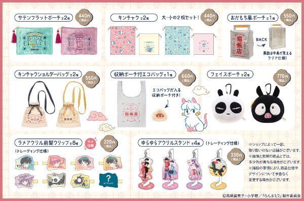 ・ポーチ、バッグ、文具からアクリルグッズまで、多数のラインナップが100円~770円で登場。